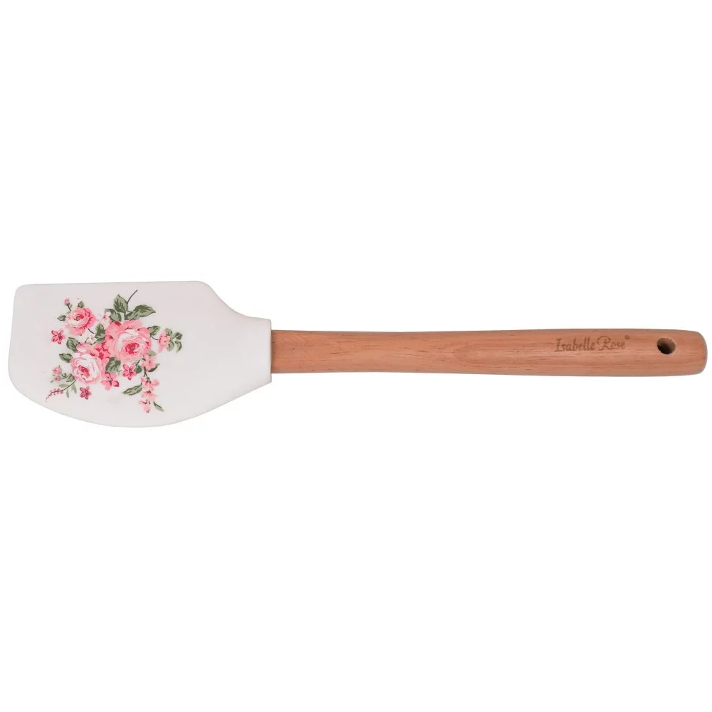 Silikonowa szpatułka z kolekcji Bella to połączenie funkcjonalności i stylu, które z pewnością zachwyci każdego miłośnika kulinariów. Ozdobiona uroczym motywem kwiatów na białym tle, silikonowa część szpatułki prezentuje się niezwykle elegancko i pastelowo.