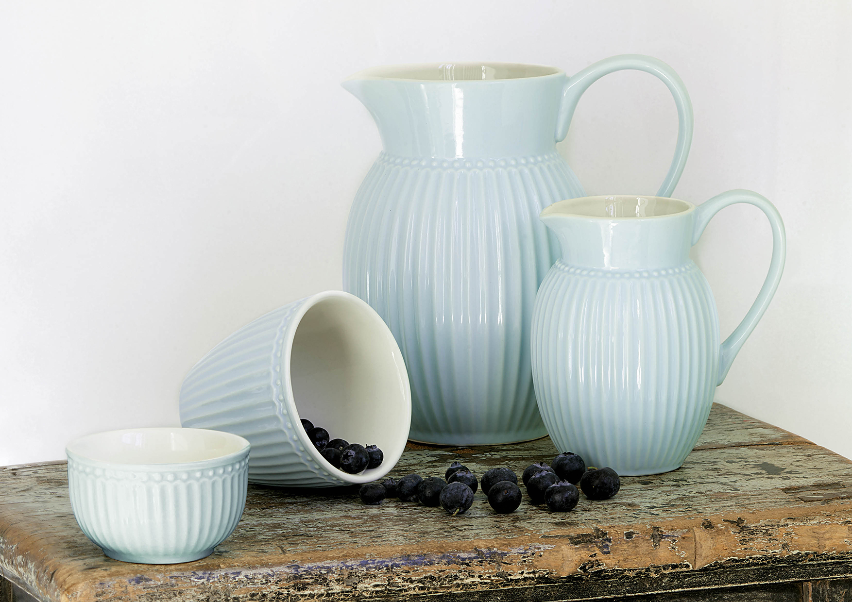Porcelanowy dzban o pojemności 1,5L z kolekcji Alice Pale Blue, duńskiej marki Green Gate.