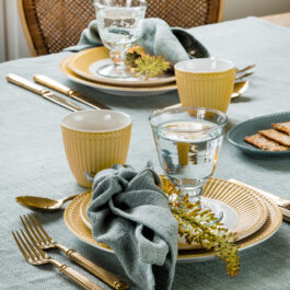 Ciesz się każdym łykiem swojego ulubionego napoju z porcelanowym kubkiem z uchem Alice w ciepłym odcieniu honey mustard od marki Green Gate. Ten stylowy kubek, idealny do serwowania kawy, herbaty czy gorącej czekolady, wnosi do codziennego użytku odrobinę elegancji i przytulności.