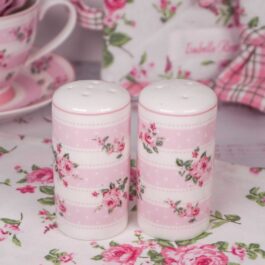 Piękna ceramiczna maselniczka/pojemnik w różowym kolorze ozdobiona białymi serduszkami, marki Isabelle Rose.