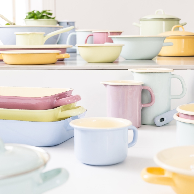 Dodaj odrobinę koloru i funkcjonalności do swojej kuchni z tym pięknym, emaliowym kubkiem miarką marki Riess!