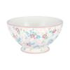 Porcelanowa francuska miska XL z kolekcji Lotta White marki Green Gate charakteryzuje się pięknym wzorem składającym się z gałązek z zielonymi liśćmi oraz rozsianymi,drobnymi różowymi kwiatuszkami. Dodatkowo, miseczki ozdobione są delikatnymi pastelowo-różowymi paseczkami, które dodają im jeszcze większego uroku. Charakterystyczną cechą francuskich miseczek są proste boki i pionowe wgłębienia, które nadają jej wyjątkowego charakteru i sprawia, że staje się ona nie tylko praktycznym naczyniem, ale również pięknym elementem dekoracyjnym na Twoim stole.