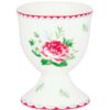 Porcelanowy kieliszek na jajko Charline White marki Green Gate ozdobiony ślicznym motywem kwiatów w odcieniach czerwieni i zieleni. Brzegi kieliszka ozdobione są paseczkami w czerwonym i zielonym kolorze.
