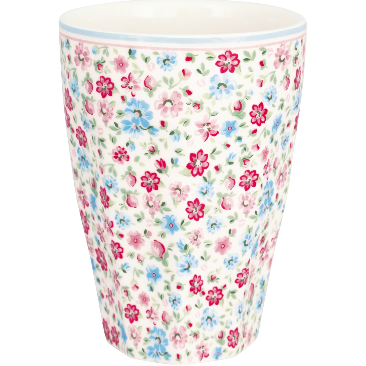 Porcelanowy kubek French Latte Louisa White Green Gate to delikatna i romantyczna propozycja inspirowana letnią lekkością. Białe tło ozdobione rozsypanymi drobnymi kwiatuszkami w pastelowych, świeżych kolorach tworzy subtelny, sielski wzór, który doskonale wpisuje się w styl cottage i skandynawski.