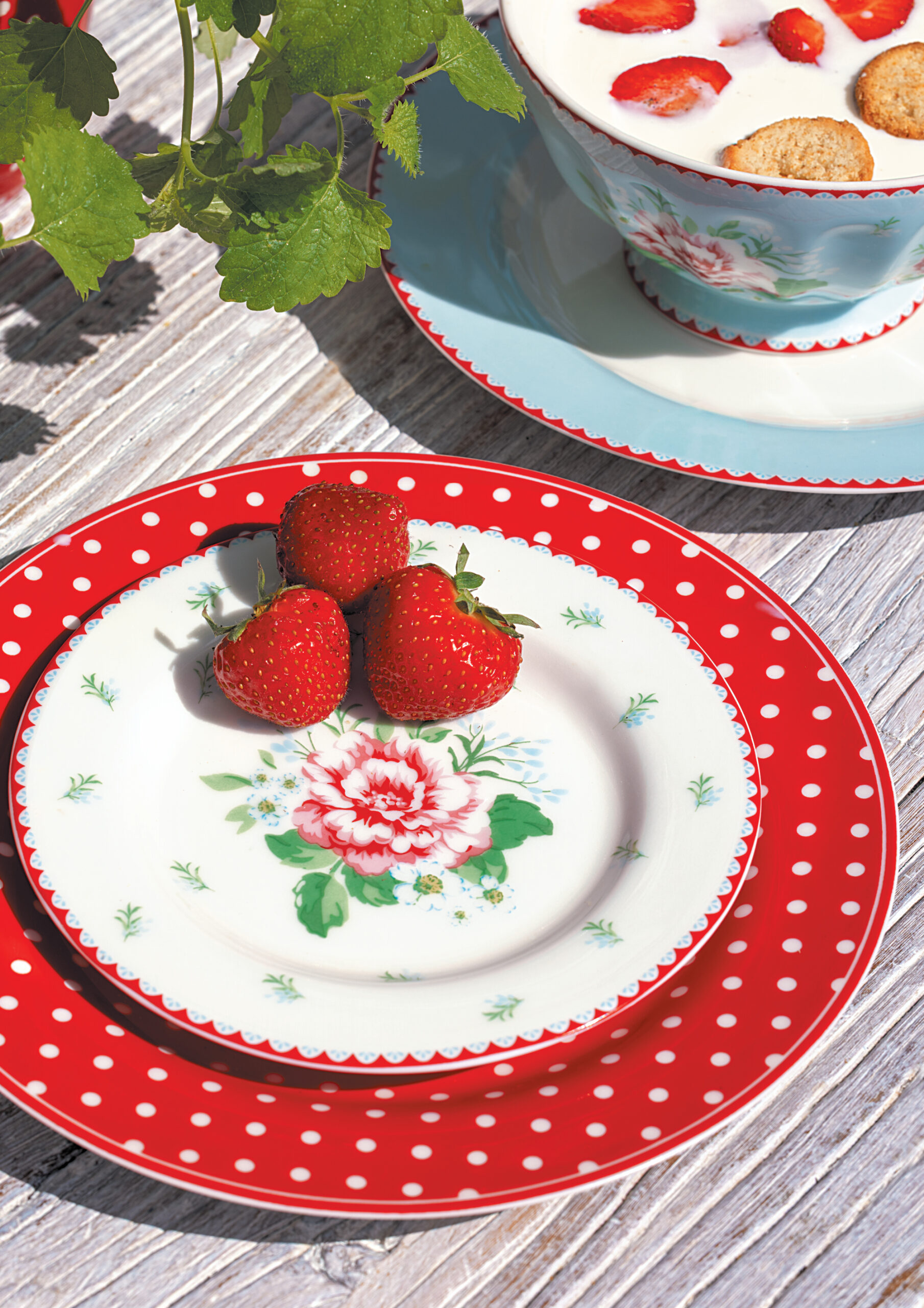 Porcelanowy talerz Green Gate Dotty Red sprawdzi się: