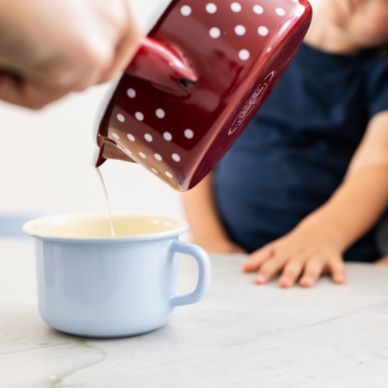 - Możliwość podgrzewania: Napój można podgrzewać bezpośrednio w kubku na płycie indukcyjnej lub innym źródle ciepła, jednak zaleca się gotowanie na małym ogniu. W przypadku podgrzewania mleka warto dodać niewielką ilość wody, aby zapobiec przypaleniu.