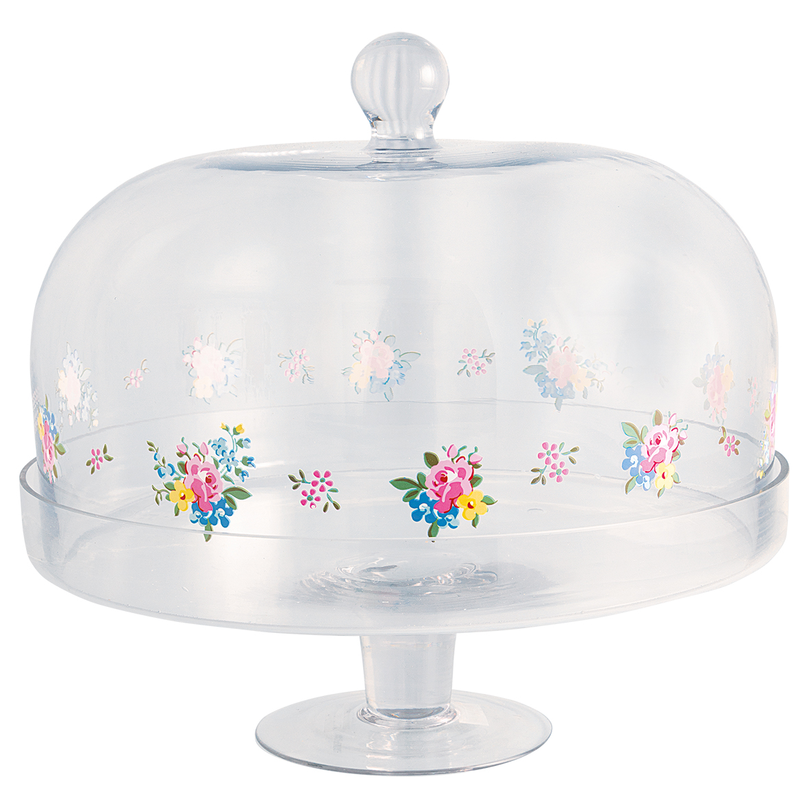Stylowa patera z kloszem, z kolekcji Laura White, duńskiej marki Green Gate. Ozdobiona ślicznym ponadczasowym wzorem kwiatów, który czyni ją wyjątkową i niepowtarzalną. Duża, szklana patera na ciasto to praktyczny dodatek w Twojej kuchni ,który pomieści większe wypieki, a klosz ochroni przed wysychaniem.