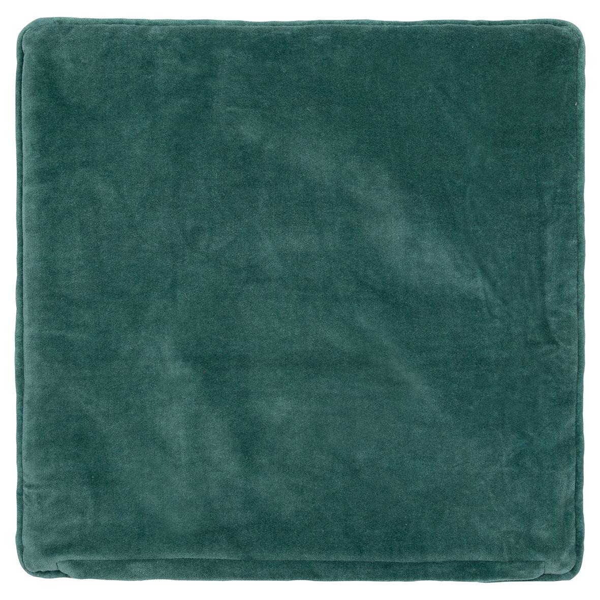 Głęboka zieleń lamówki doskonale kontrastuje z haftem, nadając całości elegancki wygląd. Tył poszewki z miękkiego, welurowego materiału w tym samym odcieniu zieleni dodaje ciepła i przytulności, co sprawia, że poszewka jest nie tylko estetyczna, ale również komfortowa w dotyku.