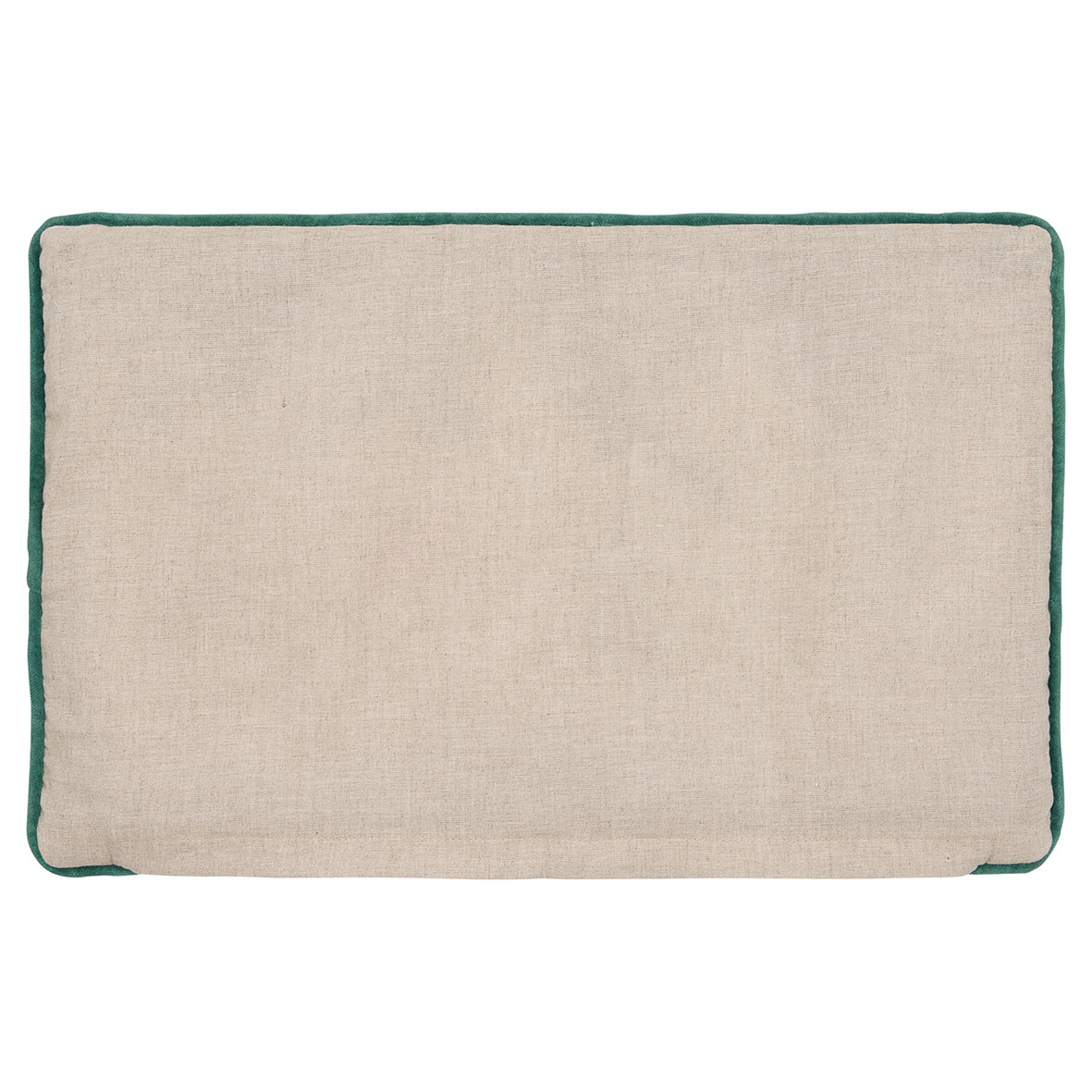 Obszyta lamówką w głębokiej zieleni, poszewka harmonijnie łączy estetykę z elegancją, a jej tył wykonany z miękkiego weluru w tym samym kolorze sprawia, że jest niezwykle przytulna i komfortowa. O wymiarach 30 x 50 cm, idealnie sprawdzi się na kanapie, fotelu czy jako dekoracja w sypialni.