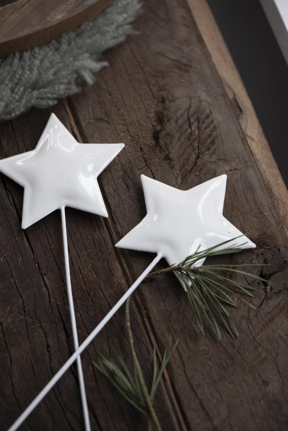 Dekoracyjna gwiazda na patyku w kolorze ciepłej bieli będzie śliczną ozdobą stroików adwentowych i wianków bożonarodzeniowych. Świetnie się spradzi jako świąteczna dekoracja włożona do wazonu z sosnowymi gałązkami lub do doniczek z kwiatami.