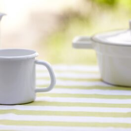 - Materiał: metal pokryty emalią — trwały i odporny na codzienne użytkowanie