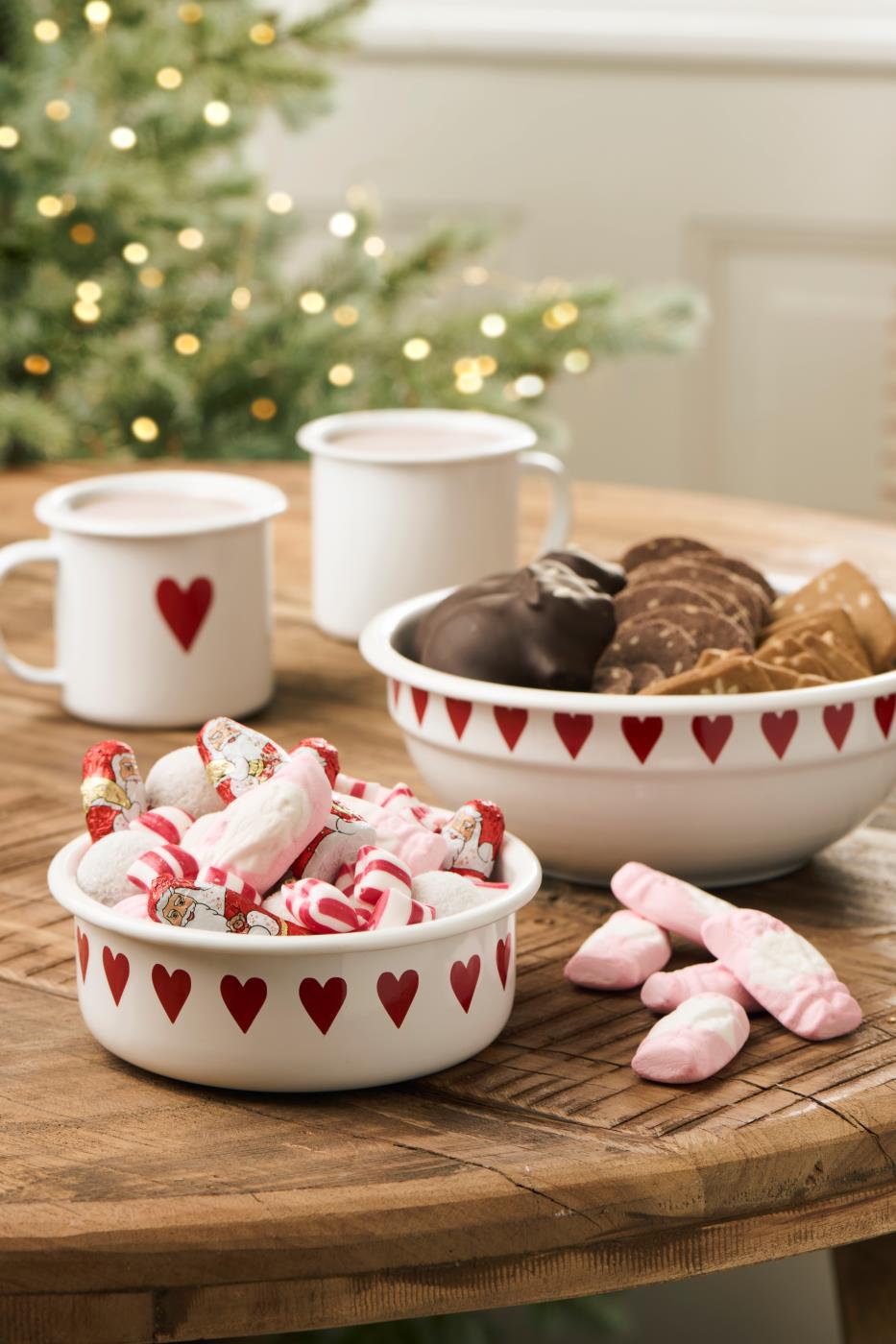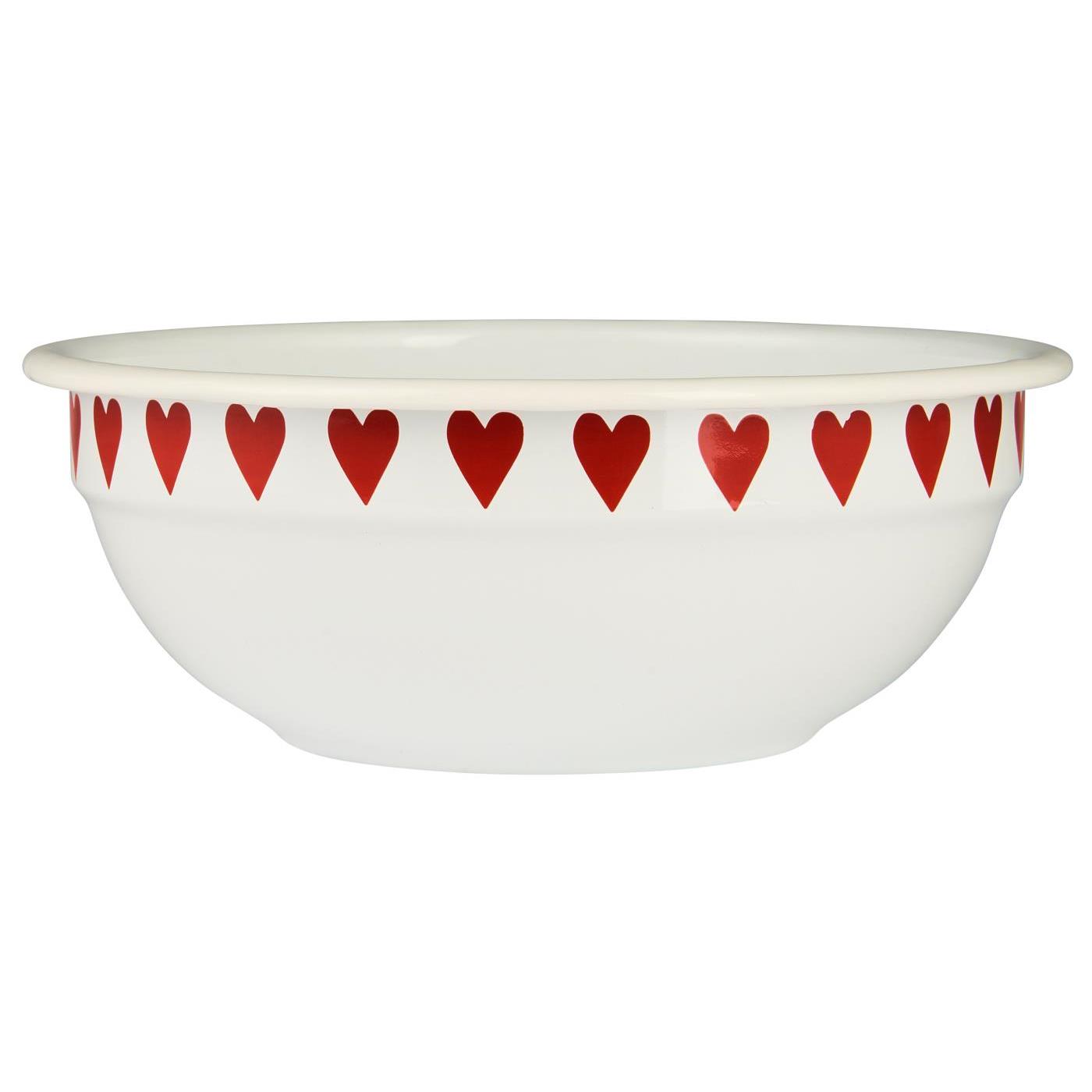 Miska emaliowana „Red Hearts” — biało‑czerwona dekoracja marki ib Laursen.