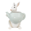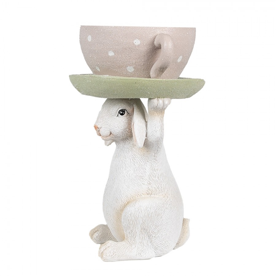 Przywitaj wiosnę z tą uroczą figurką Zajączka, który trzyma pastelowo różową filiżankę ozdobioną białymi kropeczkami! Jest ona umieszczona na miętowo-zielonym spodeczku, co nadaje całości radosnego klimatu. Ta figurka to wielofunkcyjny dodatek do każdego wnętrza! W okresie wielkanocnym możesz umieścić w filiżance jajeczka, dodając świątecznego nastroju. Latem, spodek stanie się idealnym miejscem na świeże kwiaty lub zioła, a zima zamieni się w cukierkową przyjemność, gdy w filiżance schowasz ulubione słodycze!