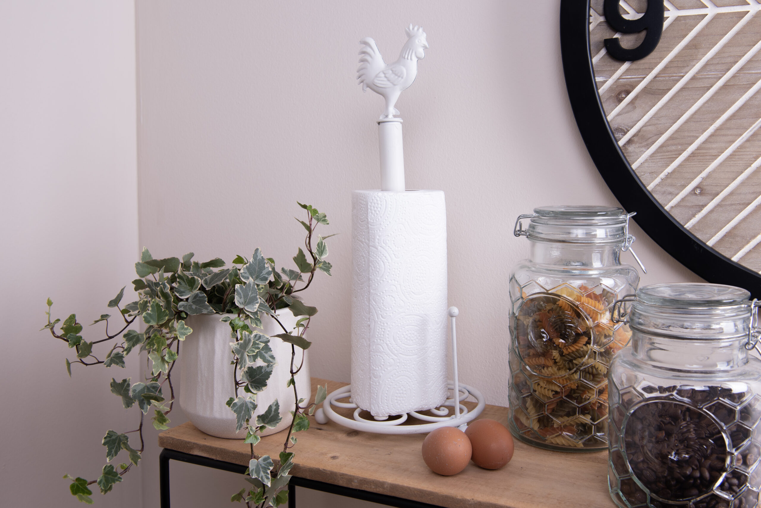 Uroczy, metalowy stojak na ręczniki papierowe w białym kolorze to doskonały dodatek do każdej kuchni w sielskim stylu!  Cechy produktu: