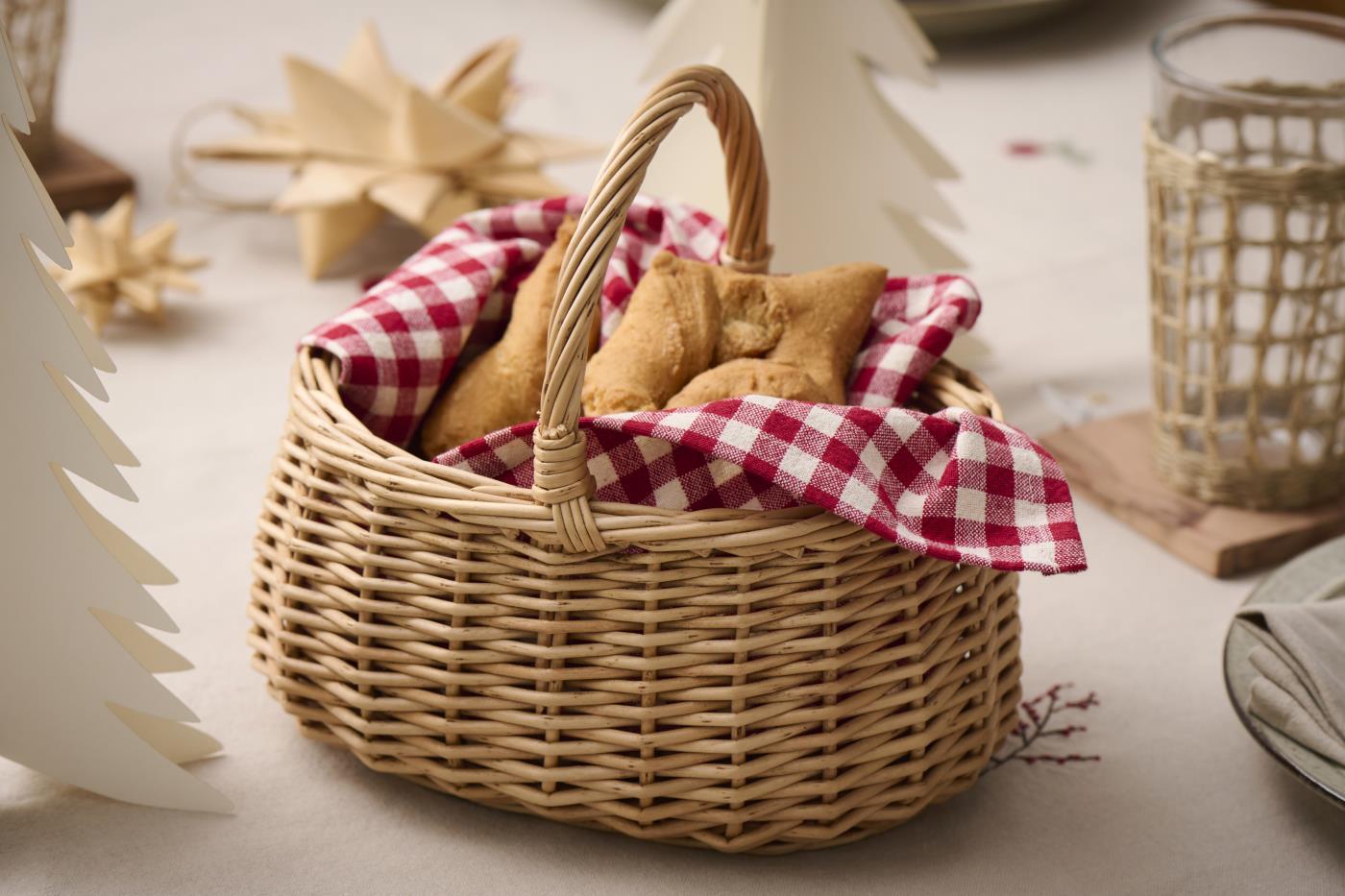 Wiklinowy koszyczek o wymiarach 20 cm wysokości, 17 cm szerokości i 23 cm długości z kolekcji Stillenat to bardzo funkcjonalny i estetyczny dodatek do każdego wnętrza. Jego rozmiary sprawiają, że idealnie nadaje się do serwowania chleba i pieczywa na stole, co może dodać uroku podczas posiłków, zarówno na śniadanie, jak i kolację.